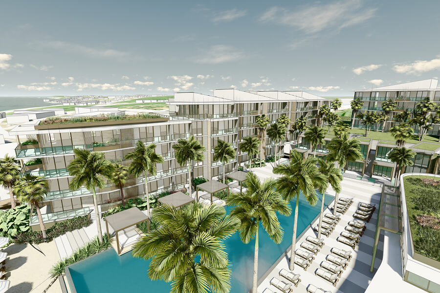 Sevyn Beach Condo, Hotel and Residences is set on 250 feet of one of the last remaining white sandy beachfront parcels, offering most units spectacular ocean views that encapsulate the essence of luxury island living. The project includes a beach club with a restaurant and private cabanas, providing the perfect setting for relaxation and social gatherings.